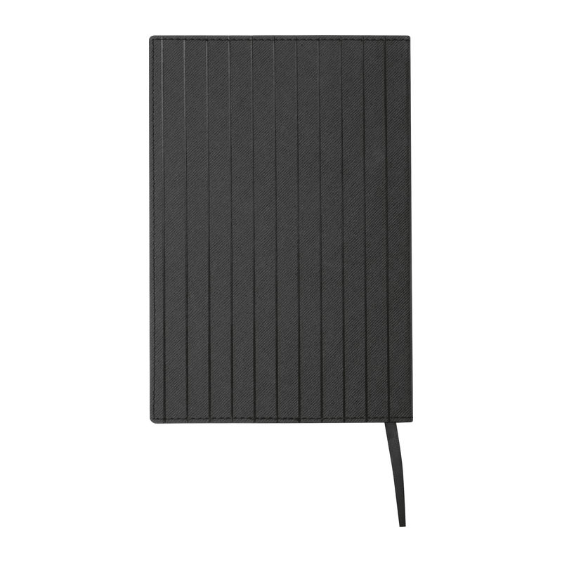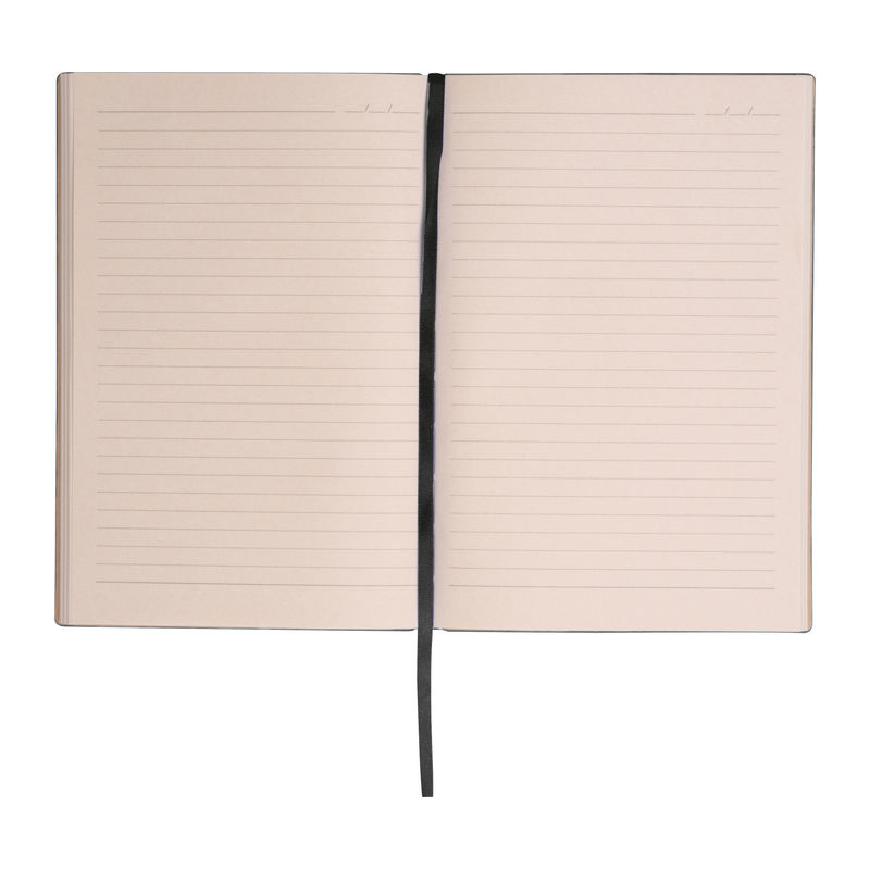 A5 notebook with a soft cover made of PU with a ribbed structure and 96 lined pages made of sugar cane. Your logo will be printed at the bottom right of the cover in the space provided.