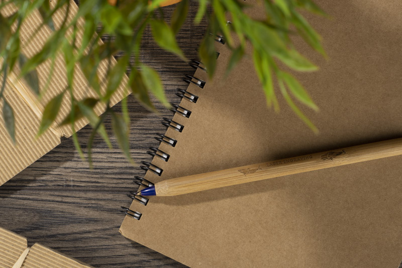 Classic spiral notebook with a brown paper cover with a place for a pen. The pages in the notebook are made of stone paper. This paper is extremely durable and resistant to moisture. It has 60 lined sheets, A5 format. Packed in a biodegradable bag.