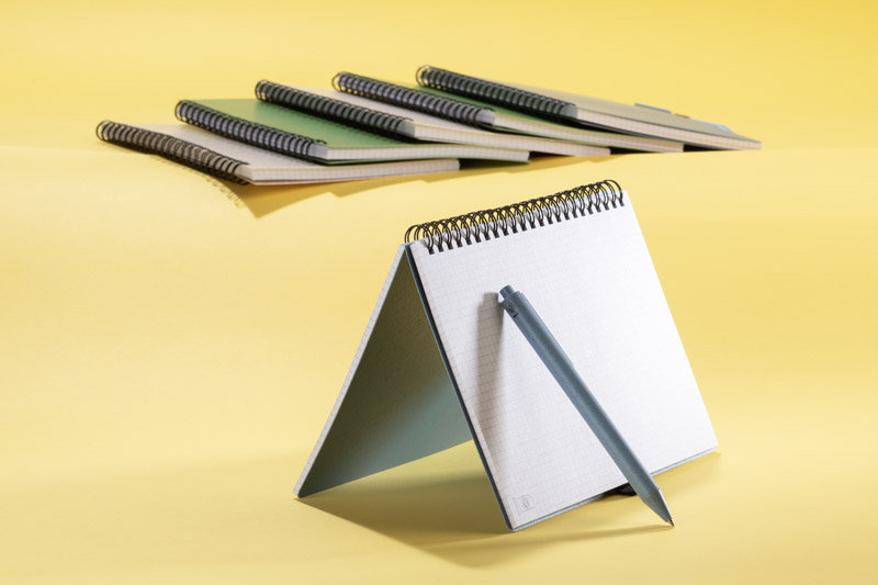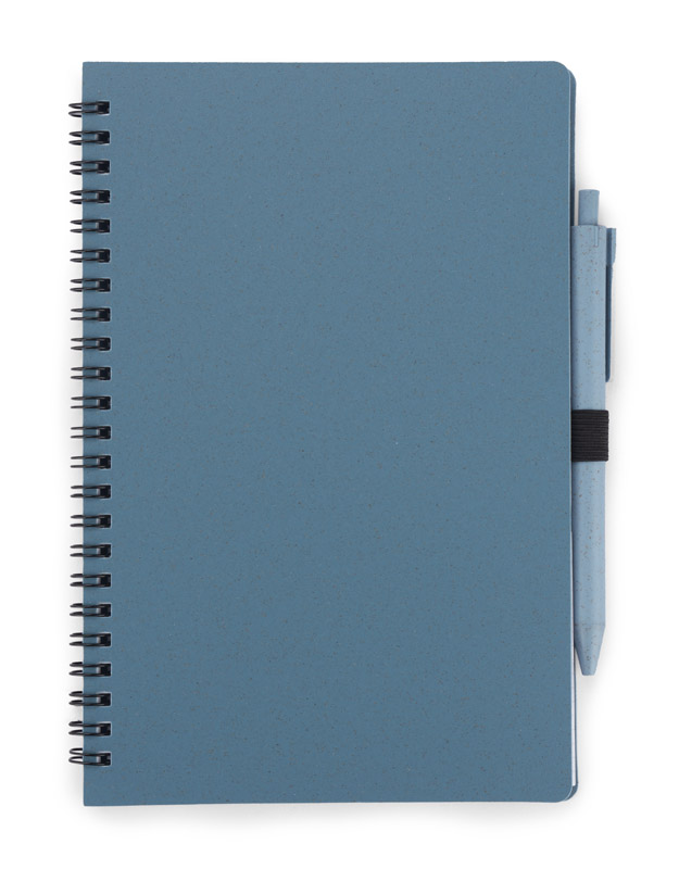 TRESA notebook with a pen, colour-matched to the cover. The pen and cover of the notebook are made from wheat straw. Spiral-bound notebook with 70 sheets of checked, recycled paper. Format A5. Ballpoint pen refill in blue.