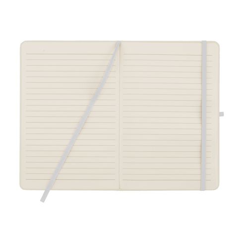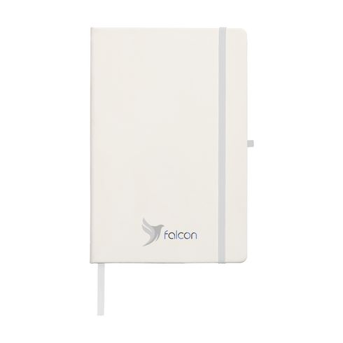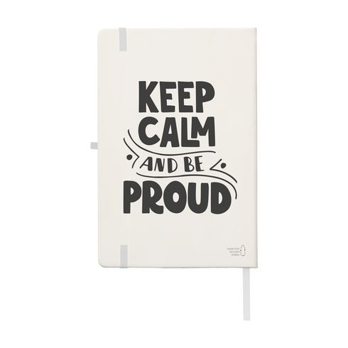 Practical notebook in A5 format. With hard RPET cover (made from PET bottles) and approx. 80 sheets/160 sheets of cream coloured, lined paper (70 g/m²). With handy elastic closure, reading ribbon and pen loop.