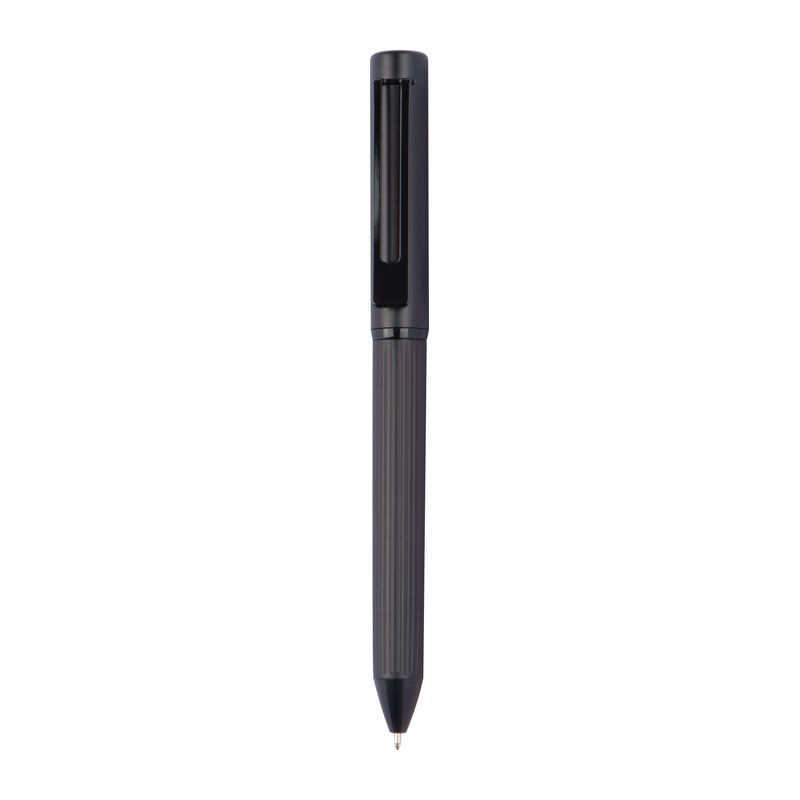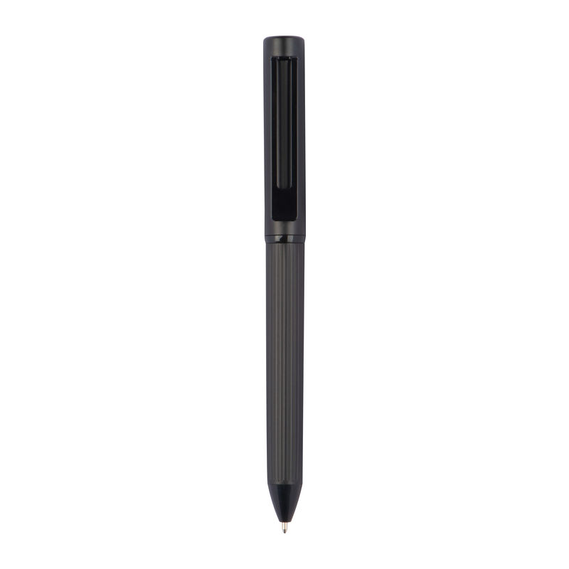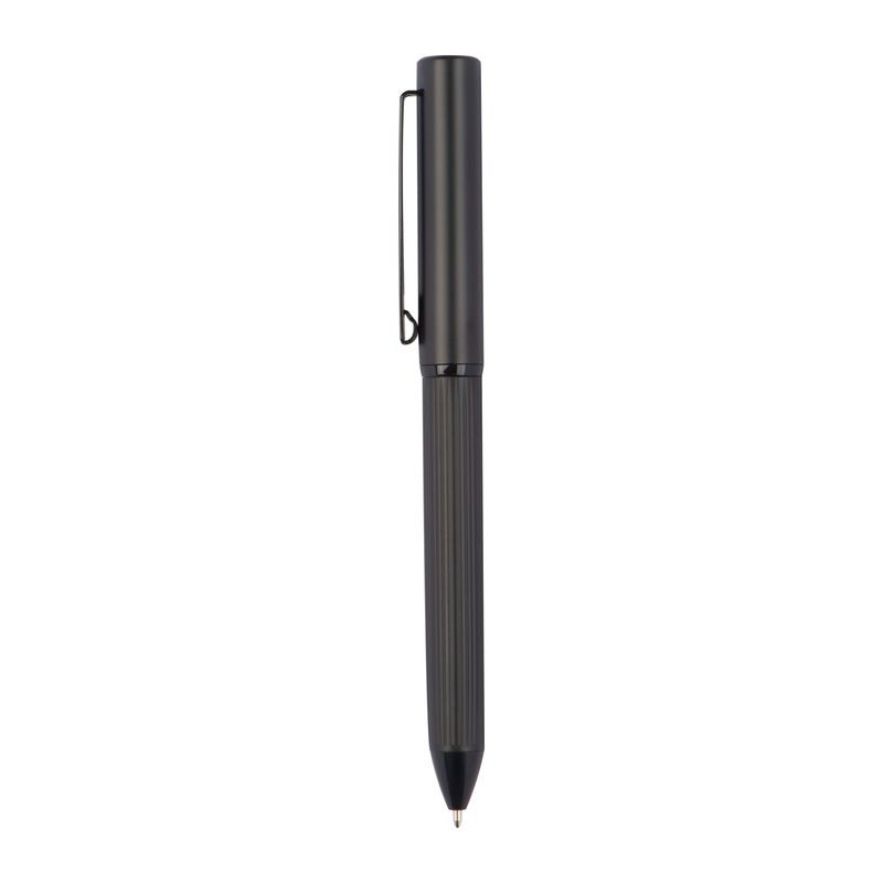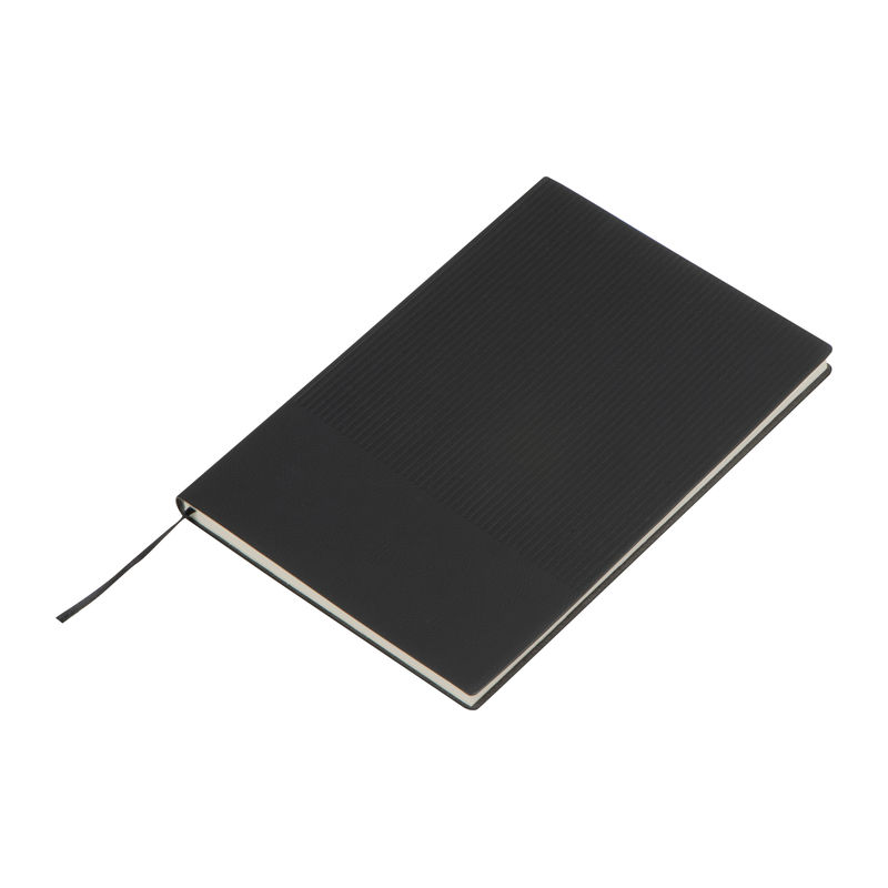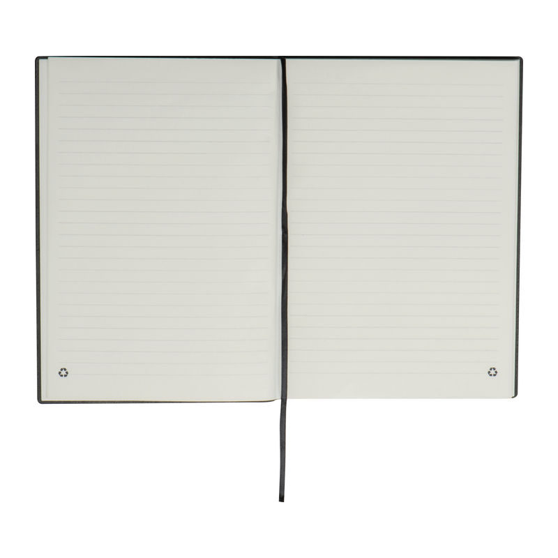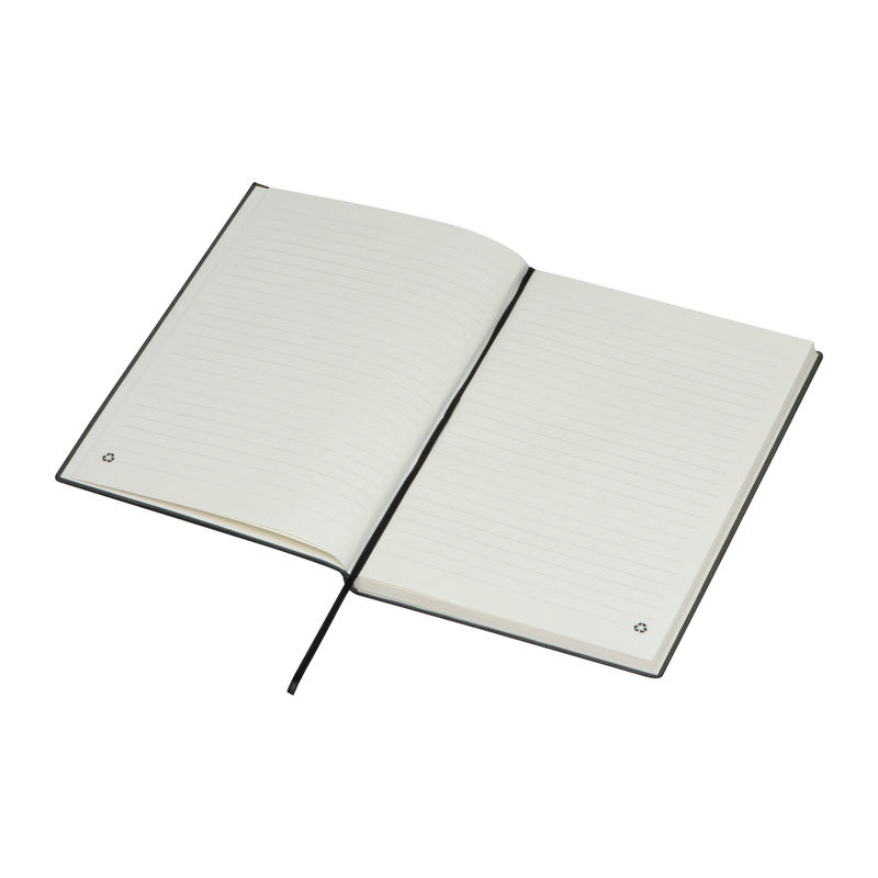 High-quality gift set consisting of a blue-writing metal pen and a notebook with soft cover and 128 lined pages made from recycled paper. Packaged in a black gift box with magnetic closure. We will print your logo on the outside of the box.