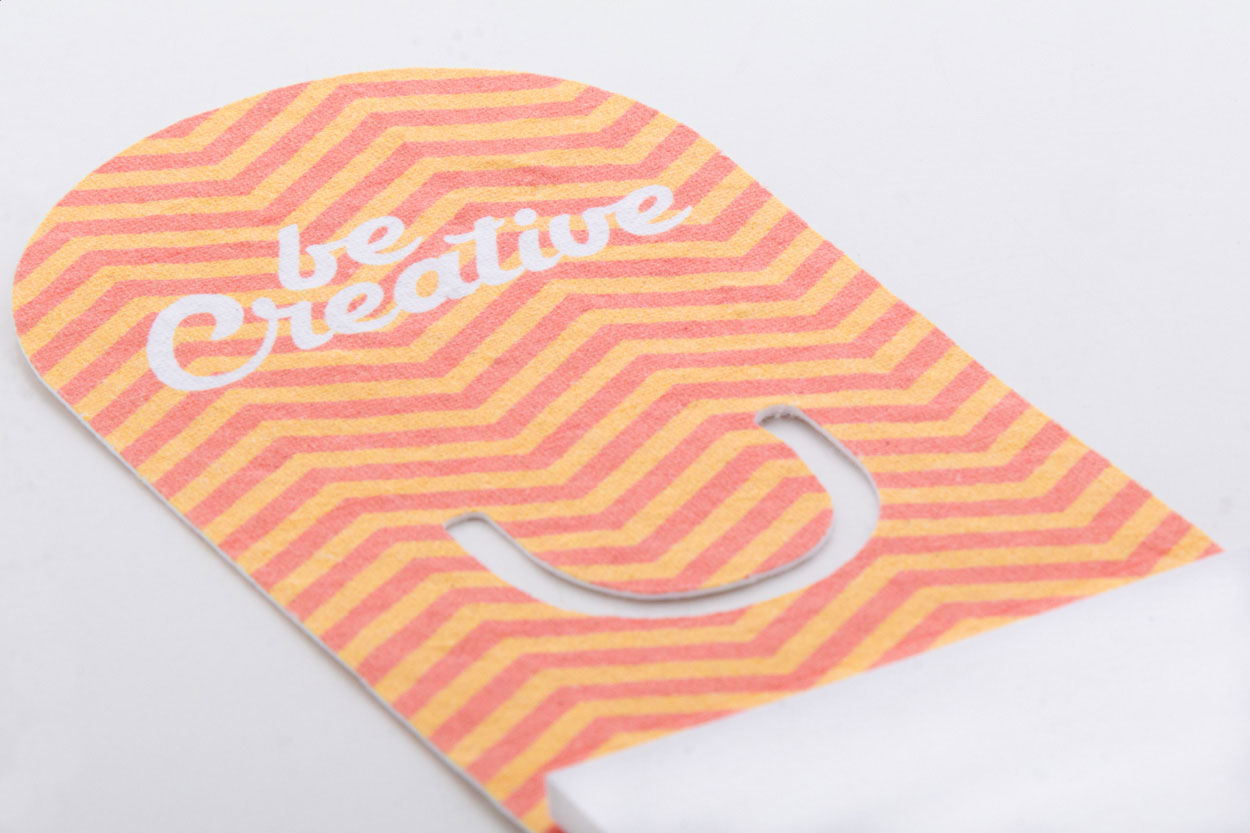 Custom made seed paper bookmark with sticky notes. Includes 25 sheets of recycled paper sticky notes (50×75 mm). Price includes full colour printing on front side. MOQ: 100 pcs. With assorted wildflower seeds.