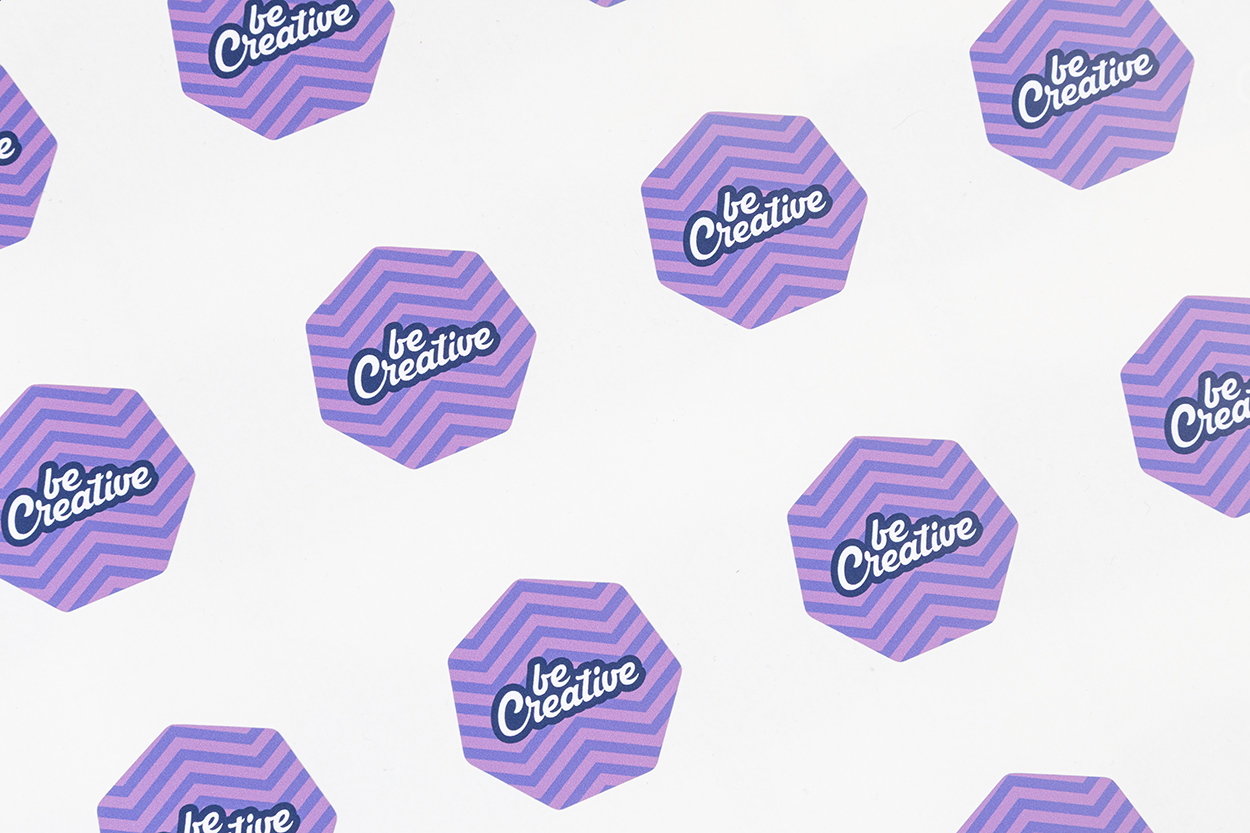 Vinyl sticker, produced in custom shape and size. Delivered in sheets. MOQ: 250 pcs.