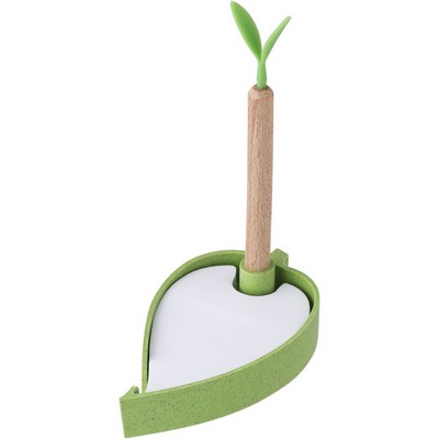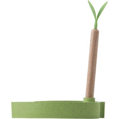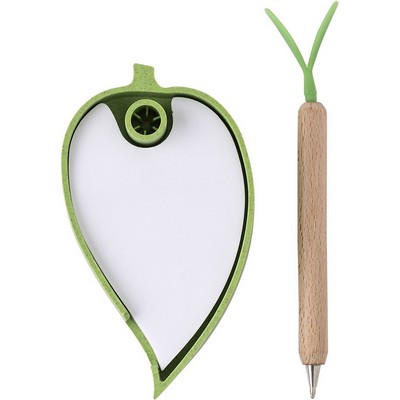 Wheat straw memo holder "leaf" with ball pen, 100 leaf shaped sticky notes