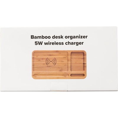 Wireless charger 5W, desk organizer, made of natural bamboo, works with mobile phones with inductive charging function, wireless output 5V/0.8A 5W, cable included