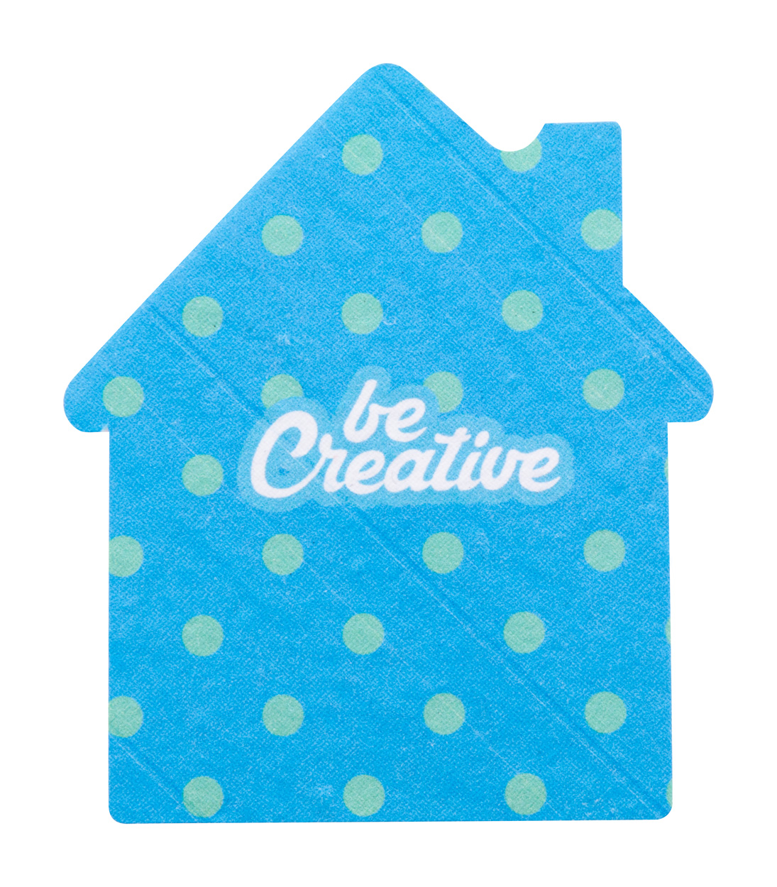 Custom made, seed paper covered house-shaped sticky notepad. Includes 50 sheets of recycled paper sticky notes. Price includes full colour printed outside cover. MOQ: 100 pcs. With assorted wildflower seeds.
