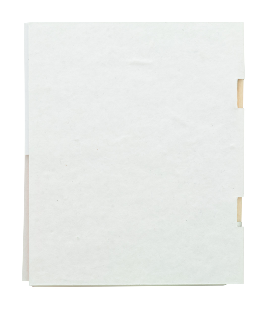 Custom made, seed paper covered sticky notepad with mini wooden pencil. Includes recycled paper sticky notes in 2 sizes (50 sheets of 100×75 mm, 25 sheets of 50×75 mm) and 100 plastic film page markers in 5 assorted colours (12×44 mm). Price includes full colour printed outside cover. MOQ: 100 pcs. With assorted wildflower seeds.