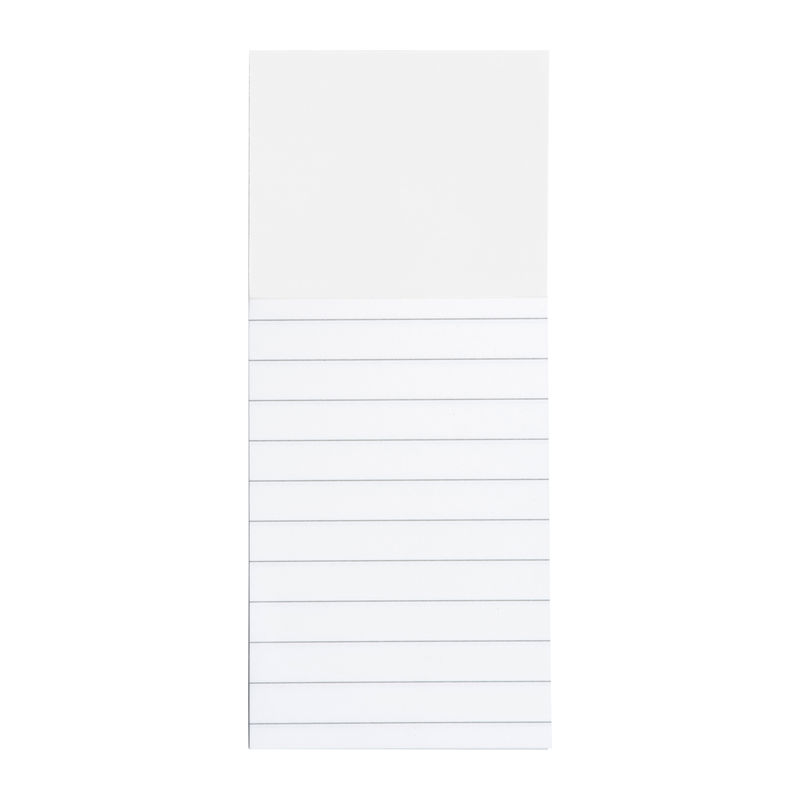 Practical fridge magnet with integrated writing pad with 40 lined pages for shopping lists, appointments etc. We will print your logo on the magnet.