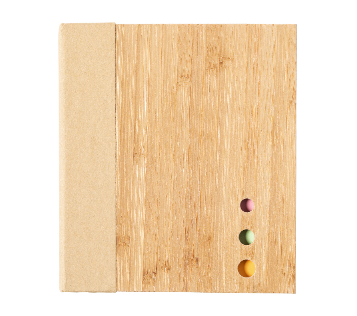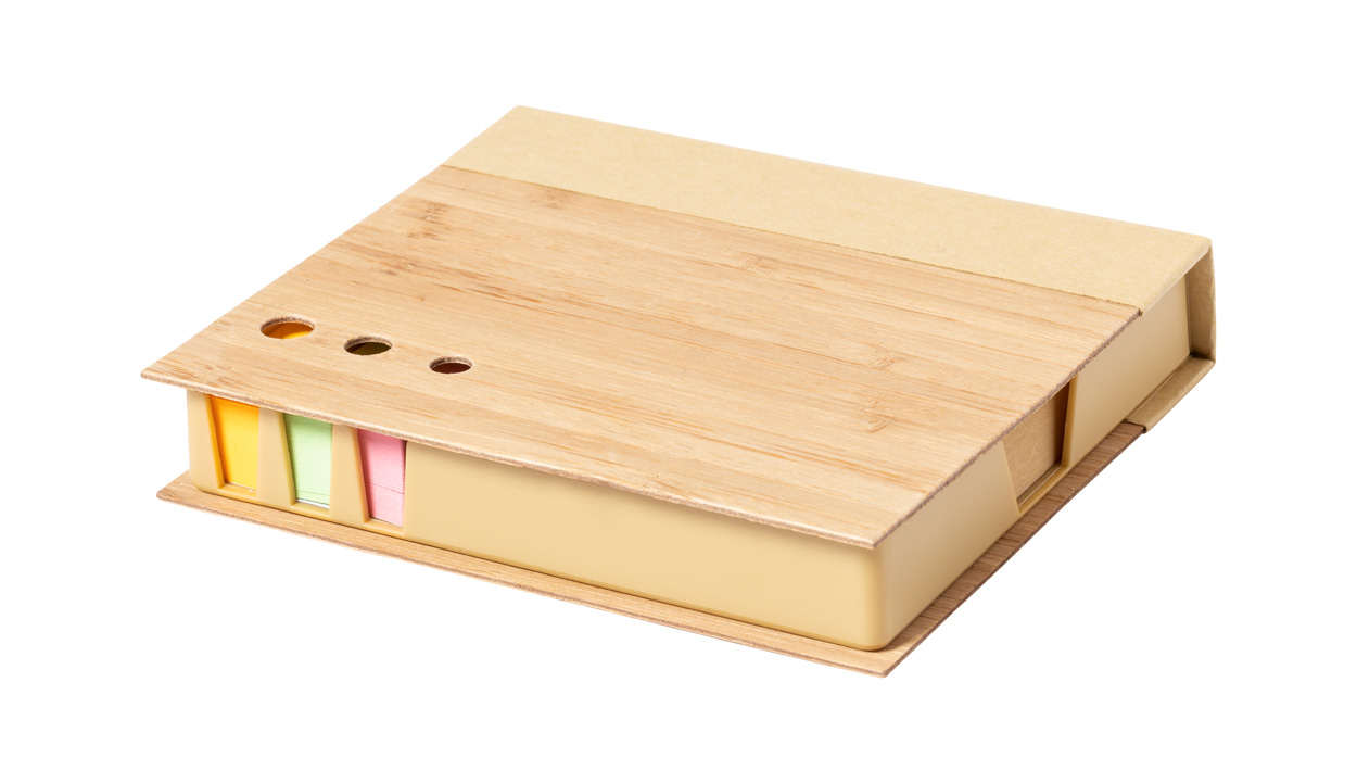 Bamboo covered recycled paper sticky notepad with 115 large and 115 medium notes and 420 page markers (in 3 different colours).