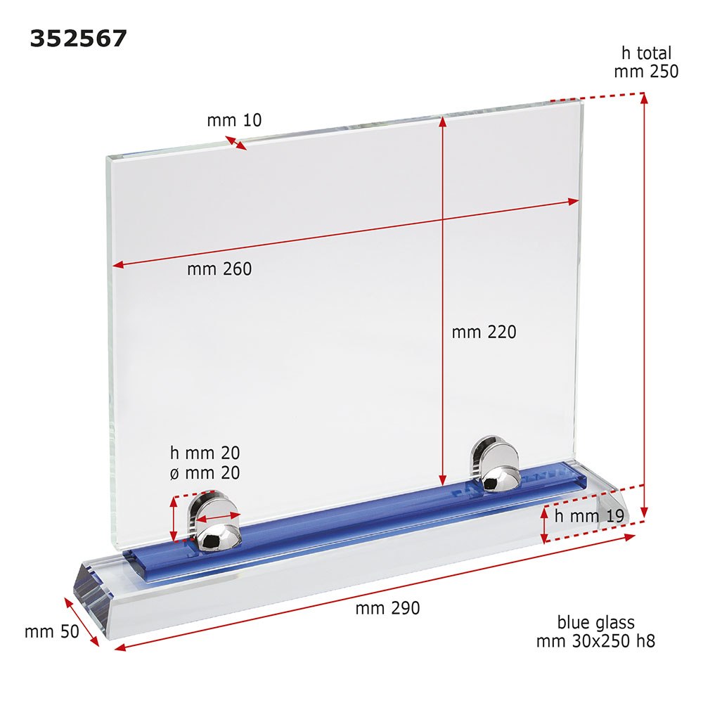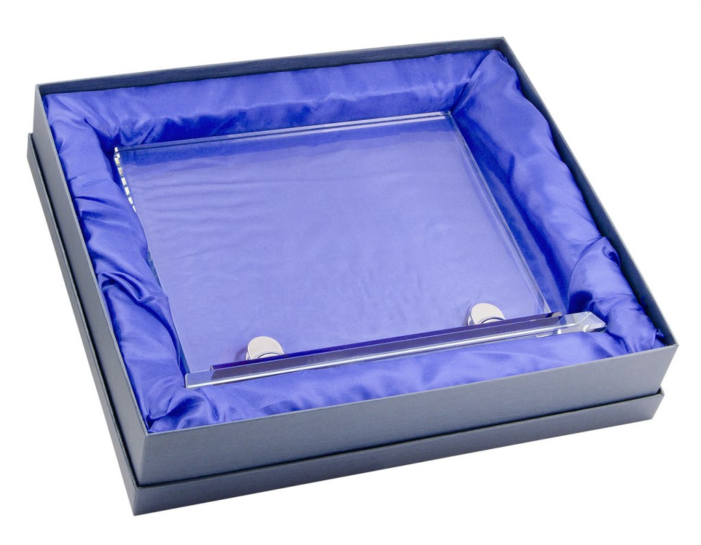 GLASS PLATE WITH BLUE BASE 260x220 mm