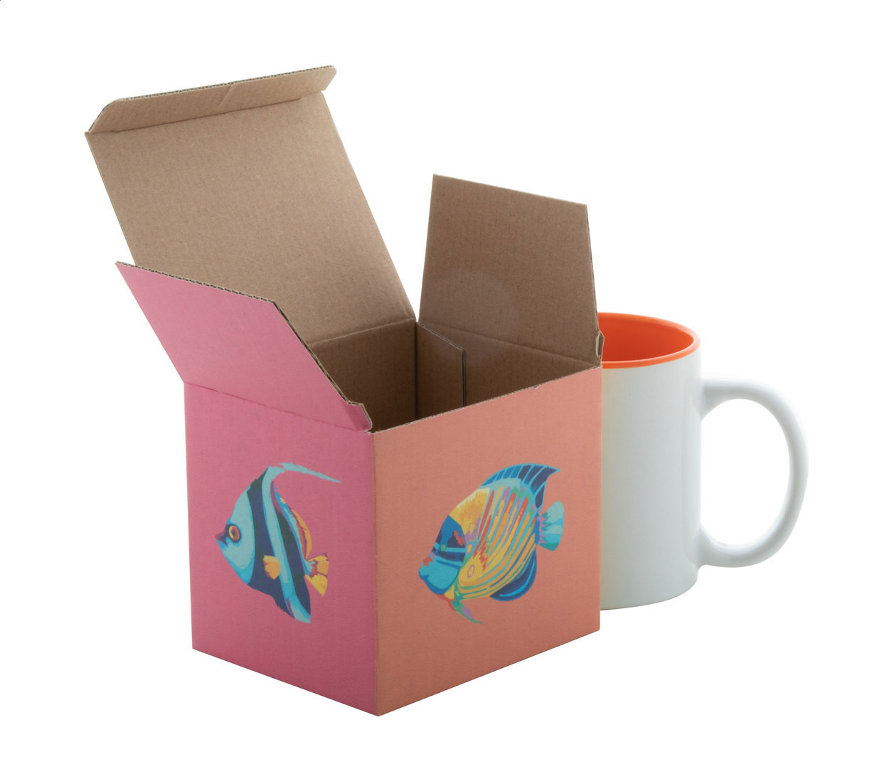 Custom made, full colour printed corrugated cardboard box for 300-350 ml mugs. If the custom box is purchased without the matching product, it will be delivered flat-packed (requiring assembly). MOQ: 50 pcs.