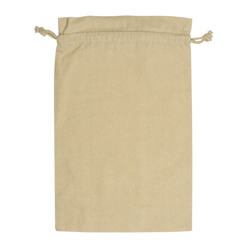 Oeko-Tex® STANDARD 100 certified, recycled cotton bag with a grammage of 110g/m². 2 lashing straps are used to close the bag. Your advertisement will be printed on one side.