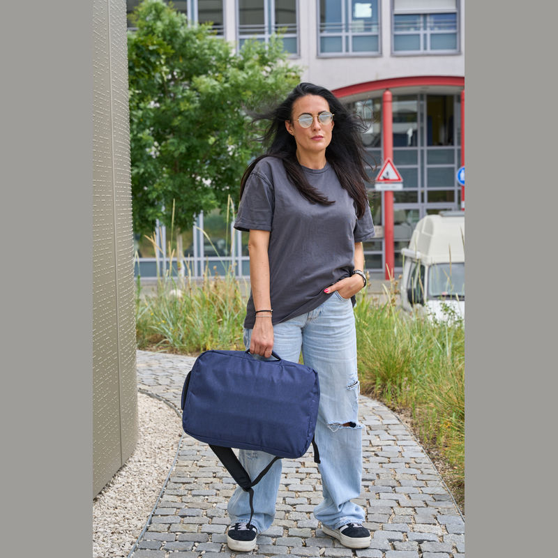 Backpack crafted from 300D polyester featuring a trolley function. It includes a spacious main compartment and padded shoulder straps, making it ideal for travel and everyday use.