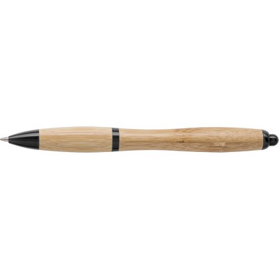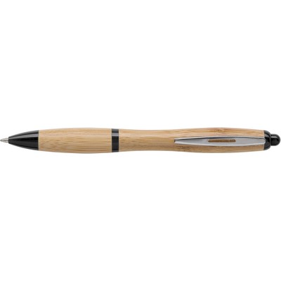 Ball pen with bamboo barrel, coloured parts and silver clip