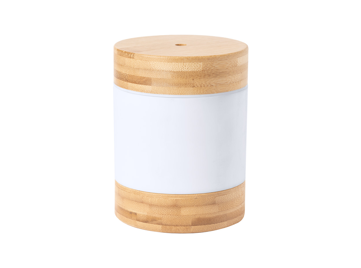 Bamboo desk humidifier with LED light. Including USB charger cable. Tank capacity: 250 ml. In kraft paper box.