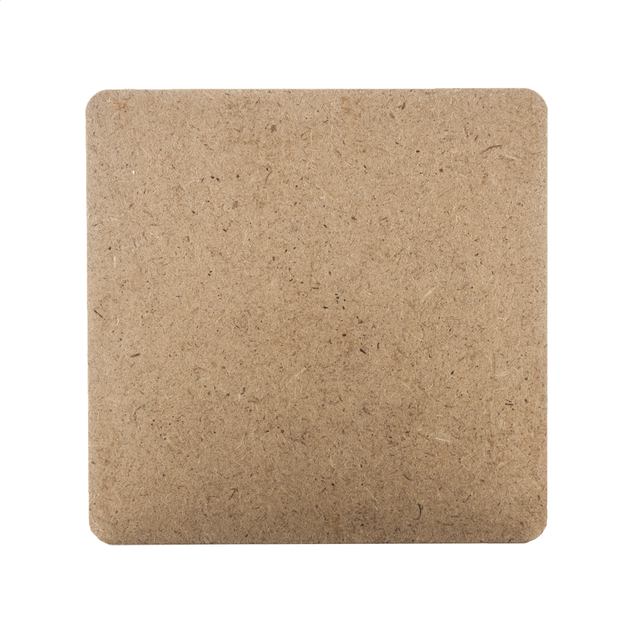 Custom made, HDF wood coaster with custom graphic on one side. MOQ: 100 pcs.