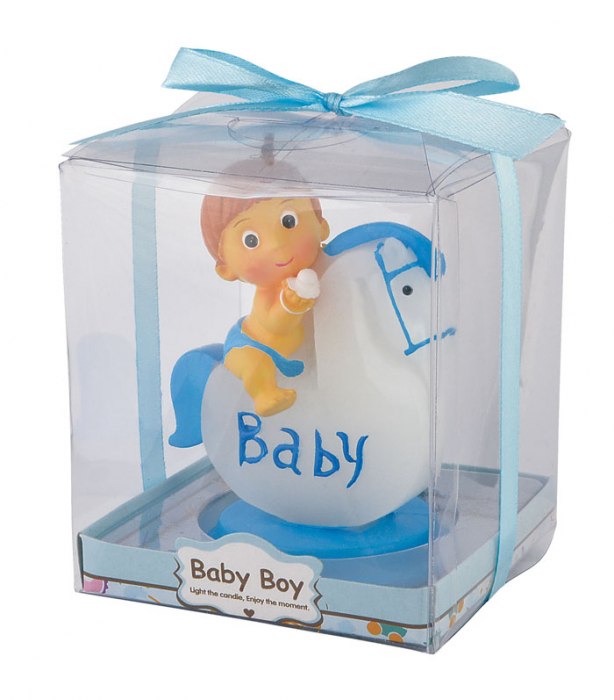 CANDLE BABY WITH HORSE SKY-BLUE H80 MM
