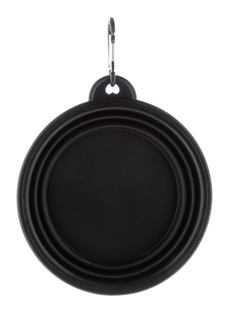 Foldable dog bowl in TPR material with matching colour carabiner, 450 ml.