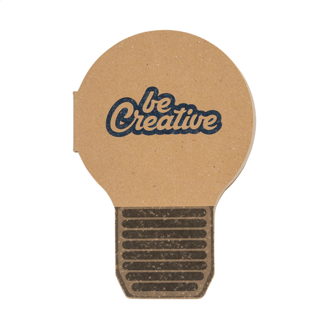 Custom made, recycled kraft paper covered light bulb shaped sticky notepad. Includes 50 sheets of recycled paper sticky notes. Price includes full colour printed outside cover. MOQ: 100 pcs.