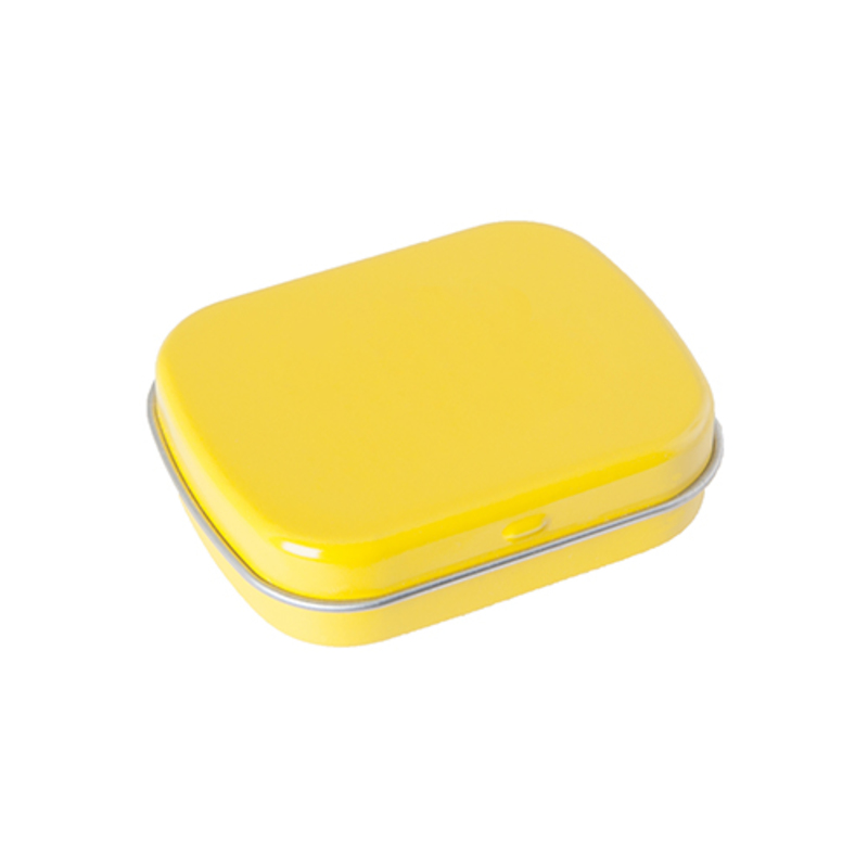 Hinge tin 62x50x17 mm with approx. 23 gr. mints, extra strong mints or chococarletties
