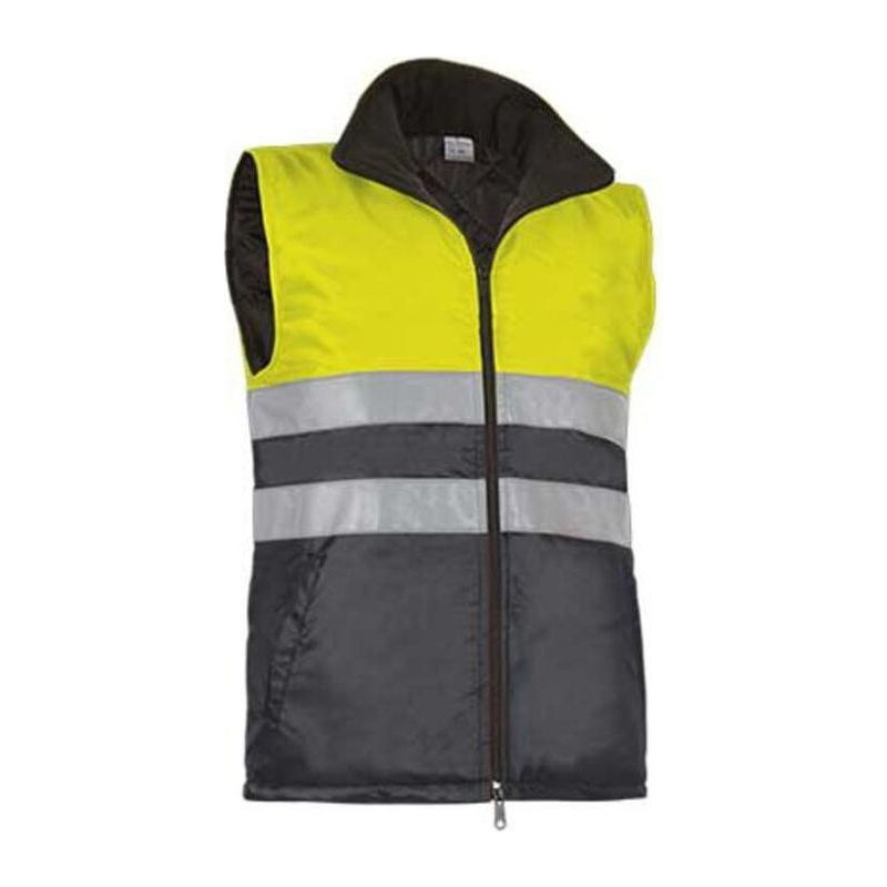 Outside waterproof fabric with polyurethane coating. Padded inside with lining 200 grs/m². Sewn retroreflective bands around the body. Central closure with double zip. Inside fleece neckband (more confortable). 2 lower pockets. Inside zip pocket. 10 units per box: 1 size, 1 color. Individual bag.