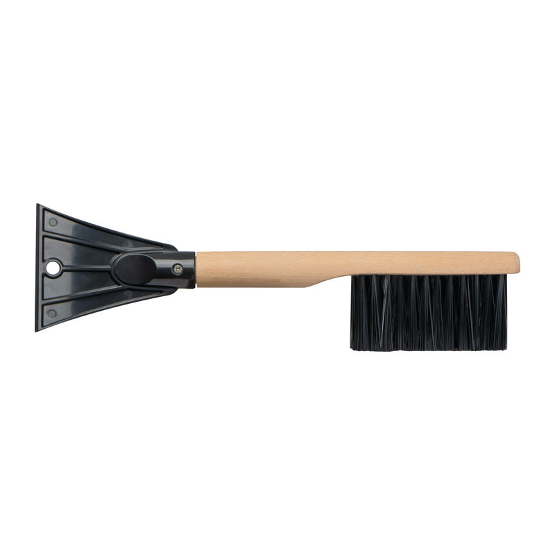 This 2-in-1 ice scraper and snow brush features an ergonomic wooden handle designed to prevent scratching of windows or bodywork. It measures 38 cm in length, combining functionality with durability. Each unit and engraving is unique due to the natural material.