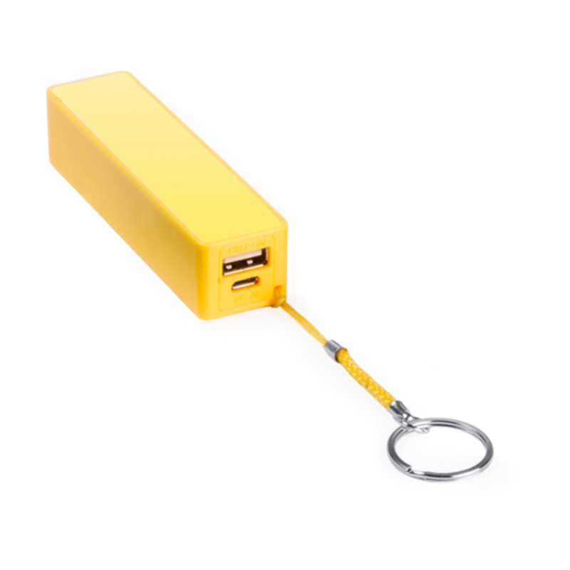 2,000 mAh, external auxiliary battery in bright tones, with a large printing surface. With matching color carrying keychain and presented in an attractive design box.