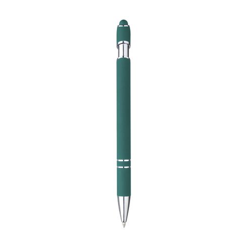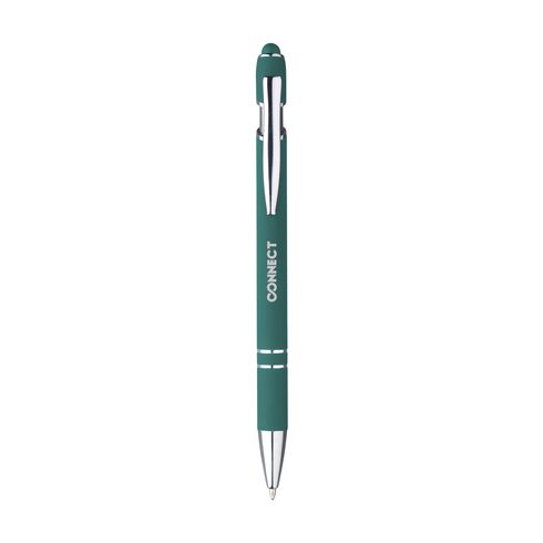 Slim, blue ink ballpoint pen with aluminium barrel. With a rubberised soft touch finish and a rubber top/pointer. Sturdy metal clip and plastic point. NOTE: Digital printing on the white ballpoint pen is not possible.