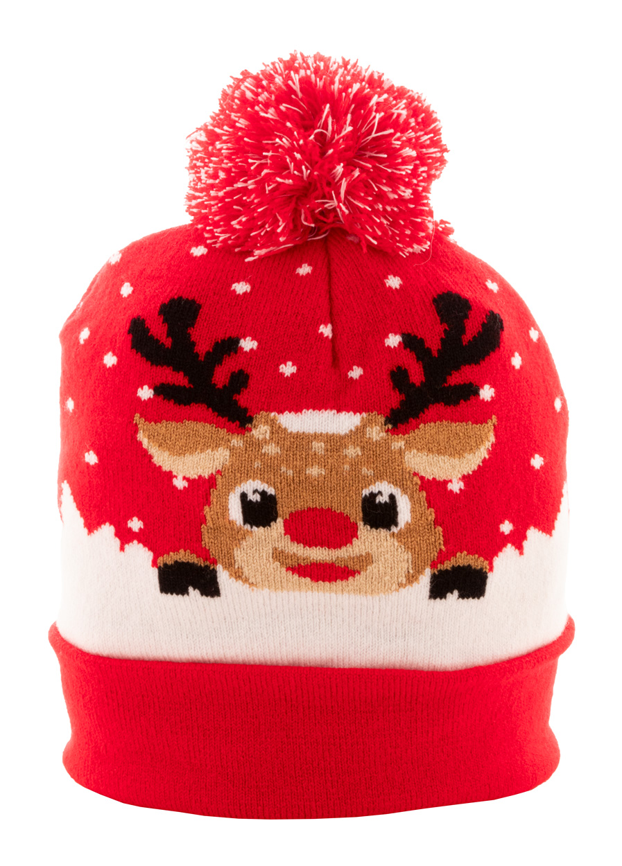 Knitted Christmas winter hat in acrylic with pom-pom.