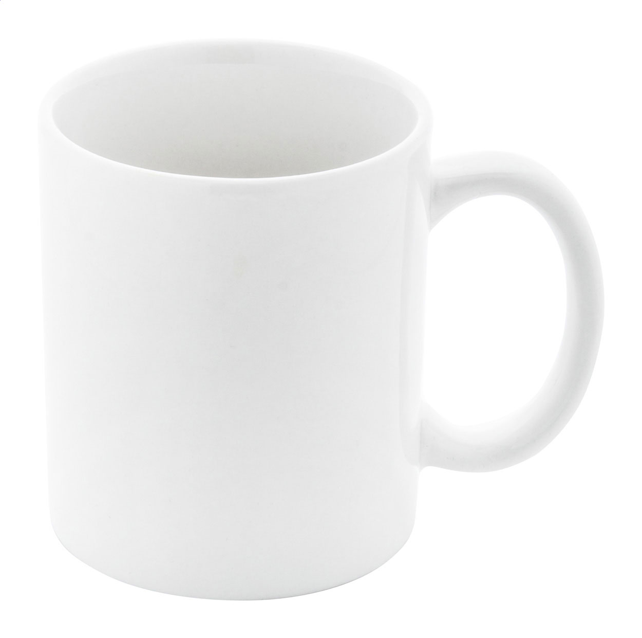 Dishwasher safe, white ceramic mug for sublimation printing, 300 ml. In white paper box.