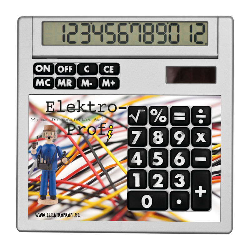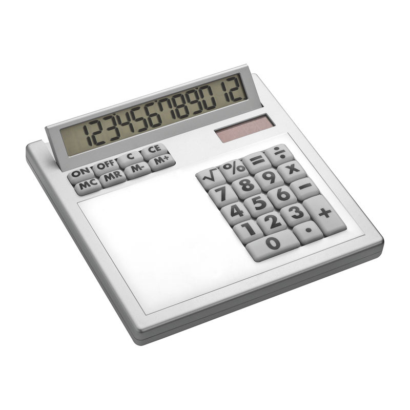 CrisMa design desk calculator with 12 digits and solar power made of silver plastic. Unique, thanks to the digital printing possibilities -create your calculator just as you like.