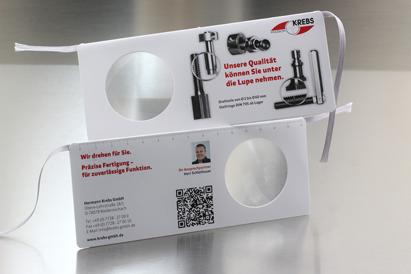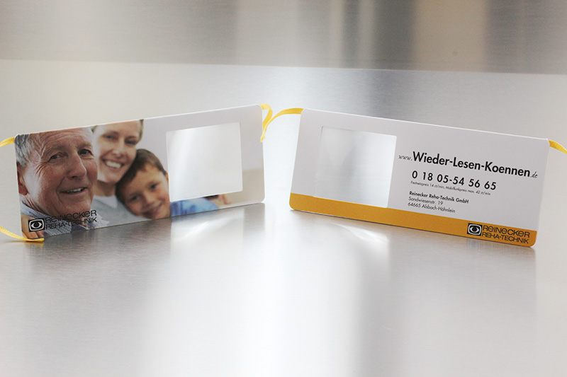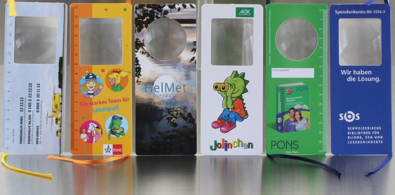 The paper magnifying glass bookmarks can be individually printed on 2 sides. Scaling can be added so that it can also be used as a ruler. It is an excellent promotional both for medical and marketing campaigns (for books or related products).
