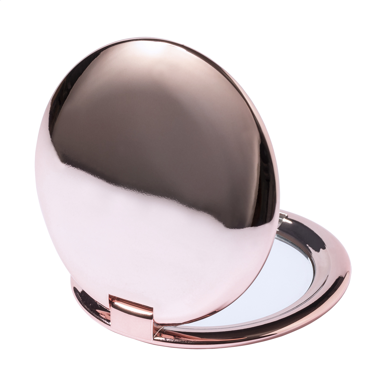 ABS plastic covered pocket mirror with metallic finish. With normal and magnifying sides.