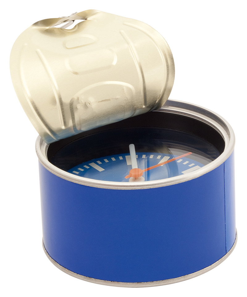 Tin can design analogue clock. Operates with 1 AA battery, without battery.