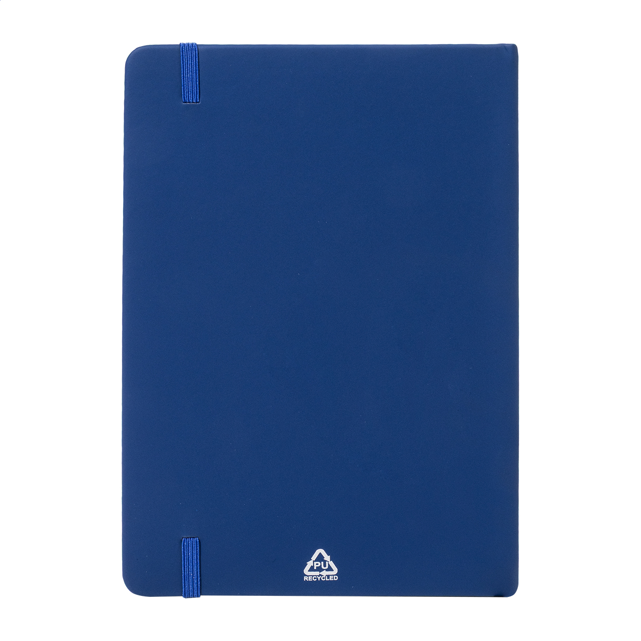 Recycled PU leather covered notebook with 100 blank sheets in recycled paper. With matching colour bookmark and rubber band. A5 size.