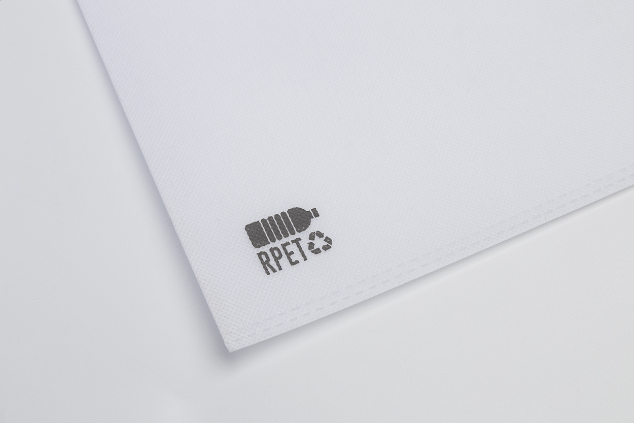 RPET non-woven shopping bag with die-cut handles, 70 g/m². With distinctive RPET sign.