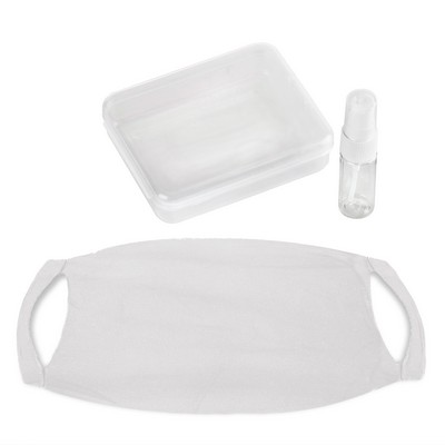 Set in box, spray bottle for disinfectant and reusable face mask with filter space and silver ions