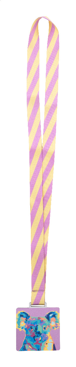 Custom made, square shaped brushed aluminium composite medal with full colour graphics. On sublimation printed RPET lanyard. Price includes sublimation and UV LED printing. MOQ: 100 pcs.