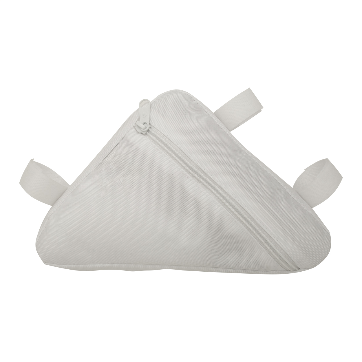 Custom made, zipped bicycle frame bag in 600D RPET polyester with adjustable velcro straps. With all-over sublimation printed graphics and distinctive RPET label. MOQ: 25 pcs.