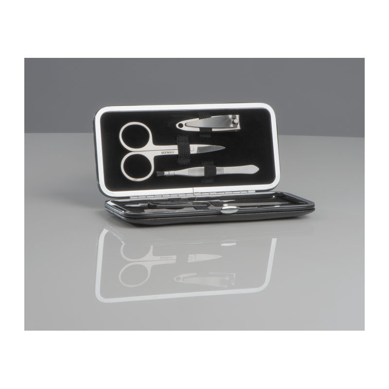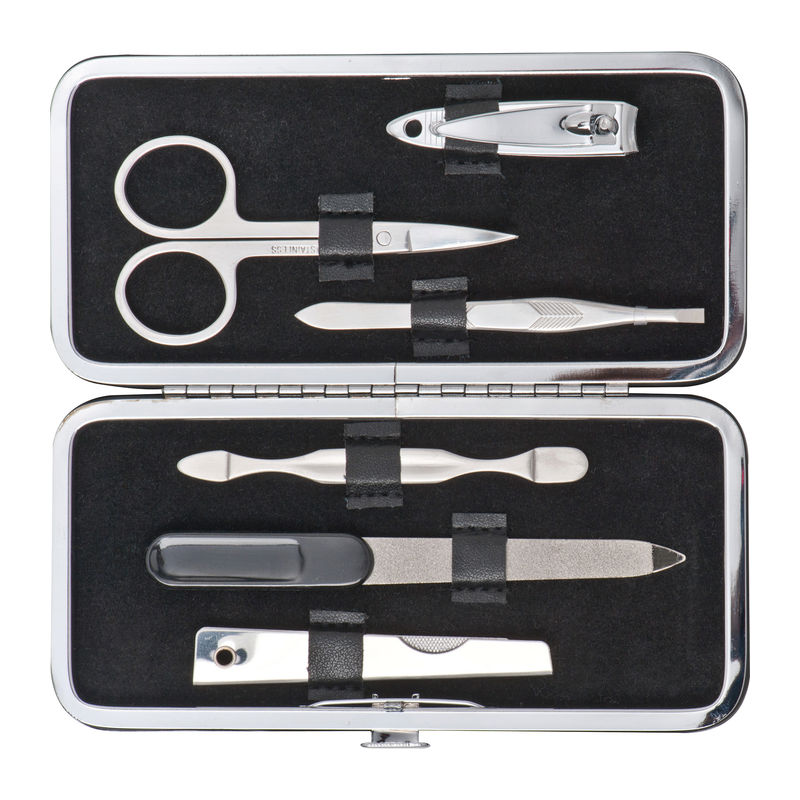 6-piece luxurious CrisMa manicure set with stainless steel instruments. We will print your logo on the case.