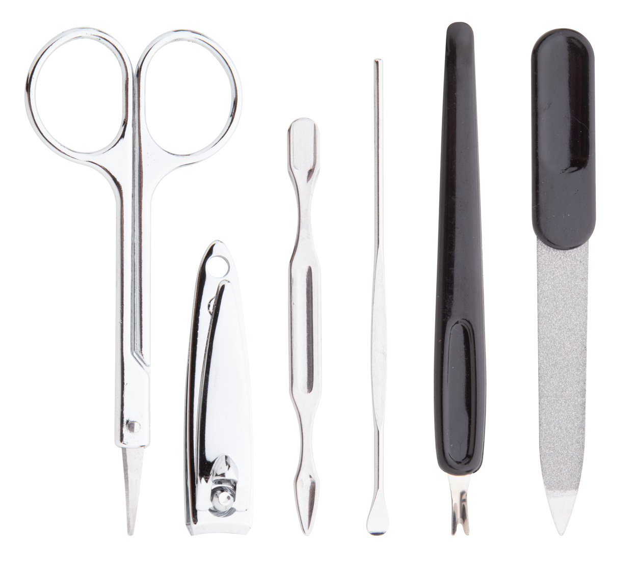 6 pc manicure set in PVC case with press-stud.