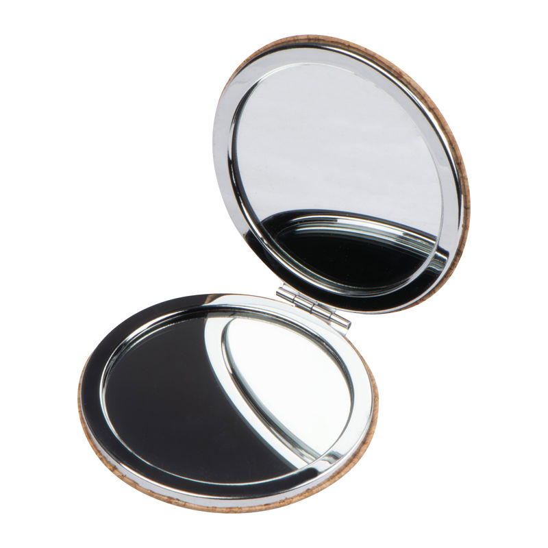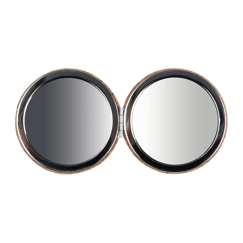Cosmetic mirror with cork exterior and a normal mirror as well as a magnifying mirror. Your logo is engraved on the cork exterior.