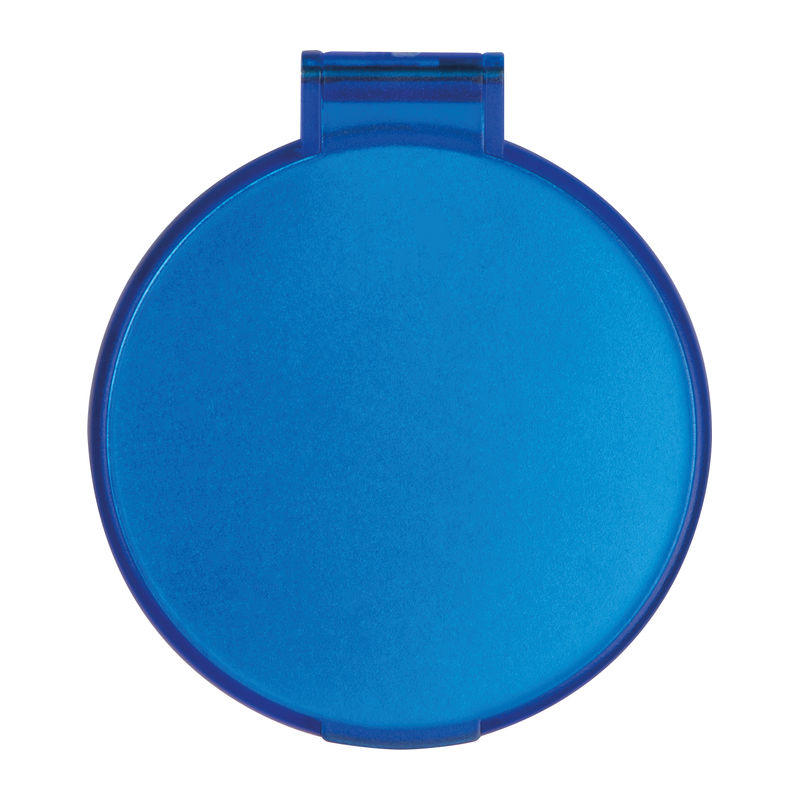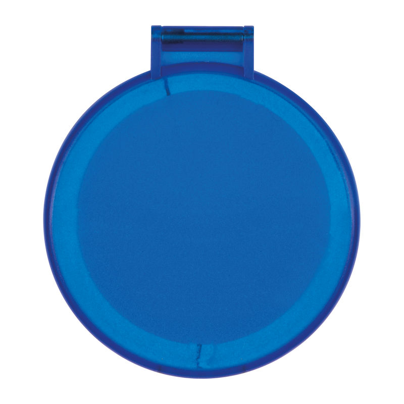 Cosmetic pocket mirror made of moulded plastic. We print your logo on the lid.