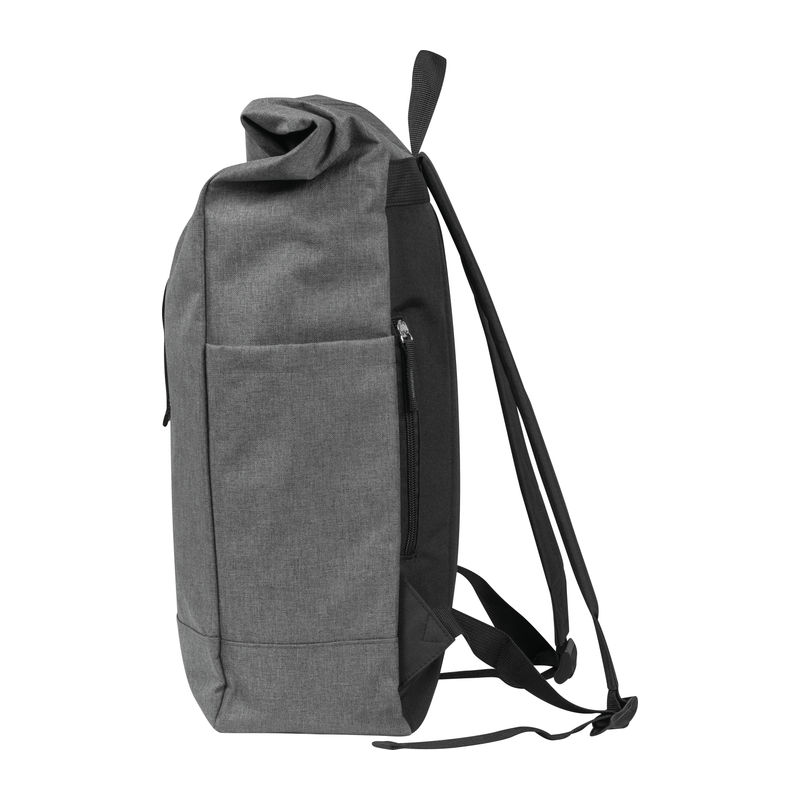 Trendy backpack with snowpolyester padded shoulder straps, coloured applications and a filling capacity of 29 liters. The backpack can be closed by simple rolling or folding. Your logo will be printed on the front.