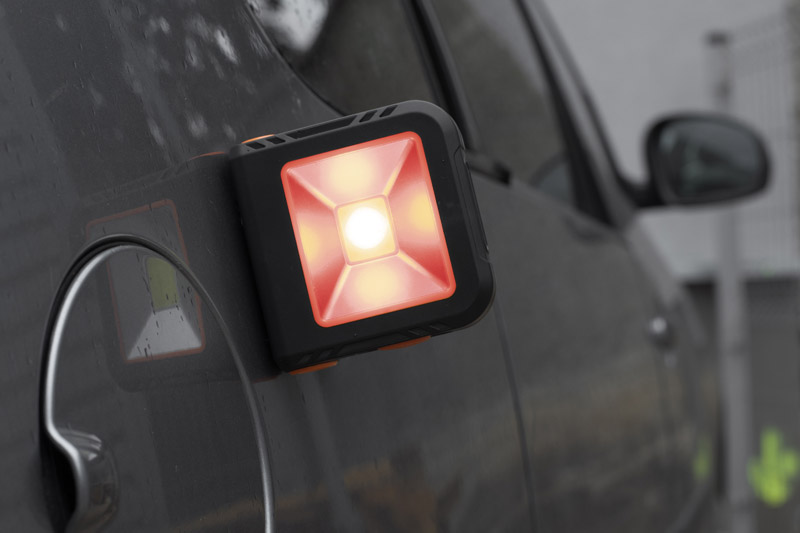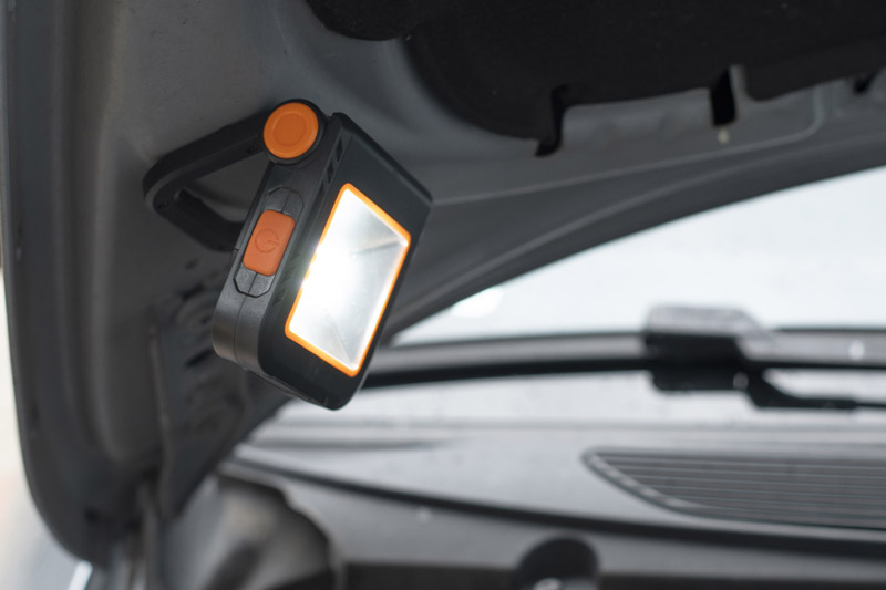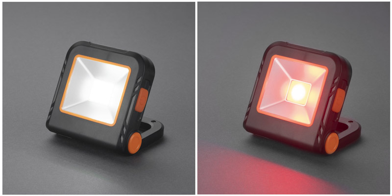 The flashlight is equipped with ten LEDs, plus six red LEDs, which are characterized by the highest reliability and uniform color temperature. The device has two lighting modes - continuous white and dashed red, it also has an angle adjustment of the stand, which can also be used as a handle. Additionally, it contains three magnets in the base of the flashlight. 3 AAA batteries are required for power supply.