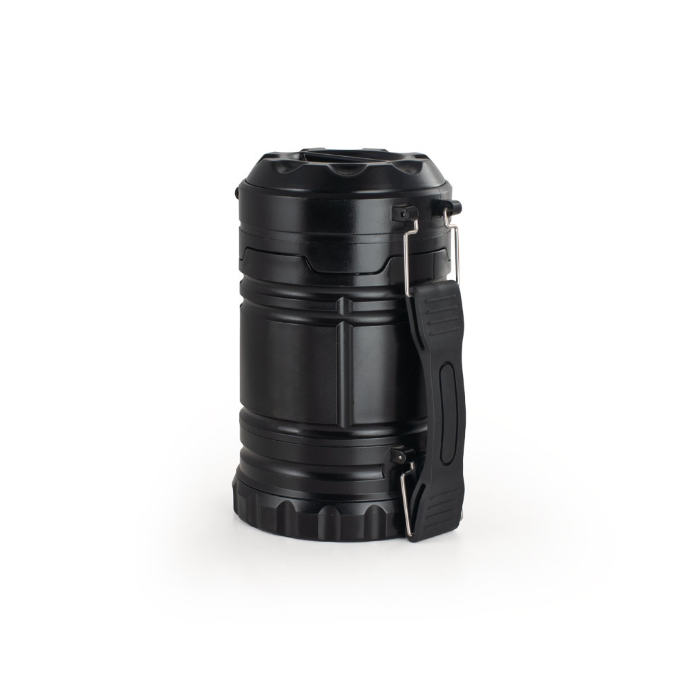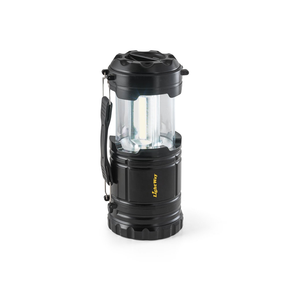 2-in-1 lantern in ABS and PS. 2 modes of use: outdoor or camping lamp, which allows you to illuminate large areas or as a lantern using the side handle which is also removable. The torch has a COB LED (200 lumens) and 1W LED. Ideal for camping or outdoor activities. Includes 3 AA batteries. Supplied in a gift box. 87 x 140 mm