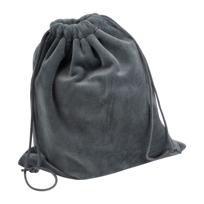Travel set including an inflatable neck pillow, sleeping mask, and a laundry bag. It offers everything you need to relax on your travels. Your logo will be printed on the bag.