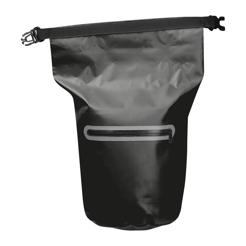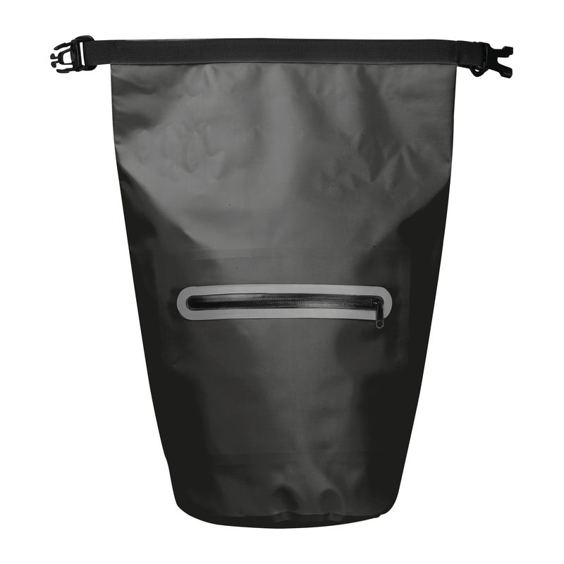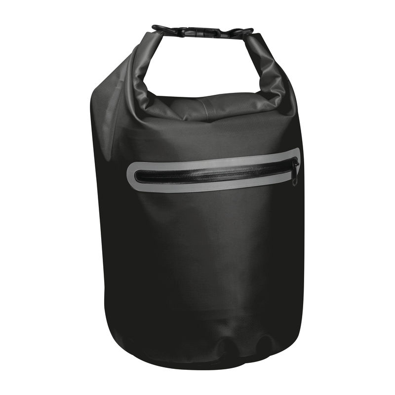 Neon-coloured, waterproof closable bag with shoulder / waist strap, reflective stripes on the front and a filling capacity of 15 liters. Your logo will be printed on the bag.