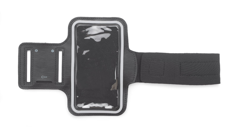 An arm phone holder will make jogging even more fun. The phone placed inside is protected with a window though which you can still use the touch screen of your phone. Additionally it has headphones output and a small pocket for a key. Maximum phone measurments: 130 x 65 x 8 mm