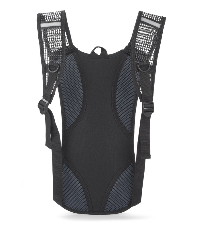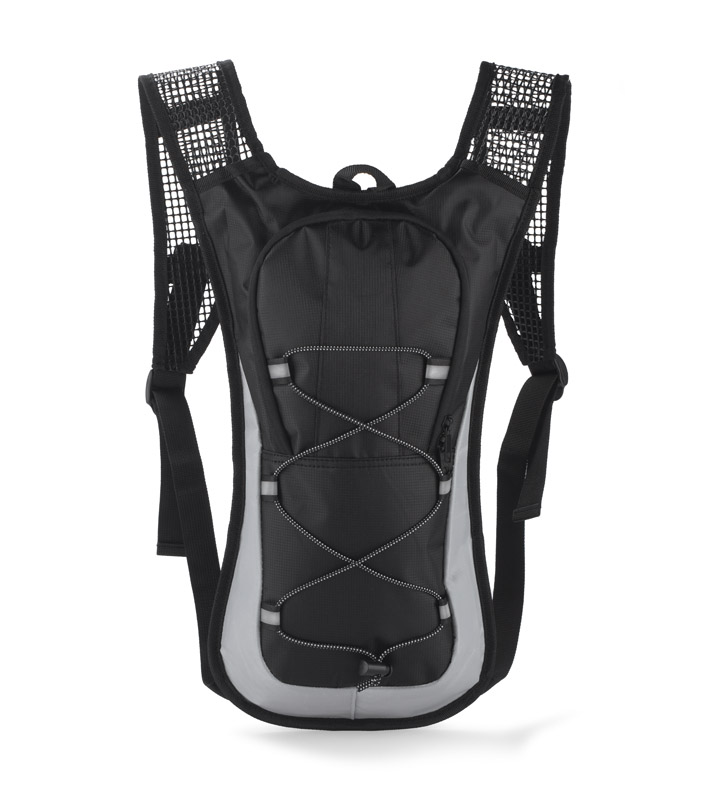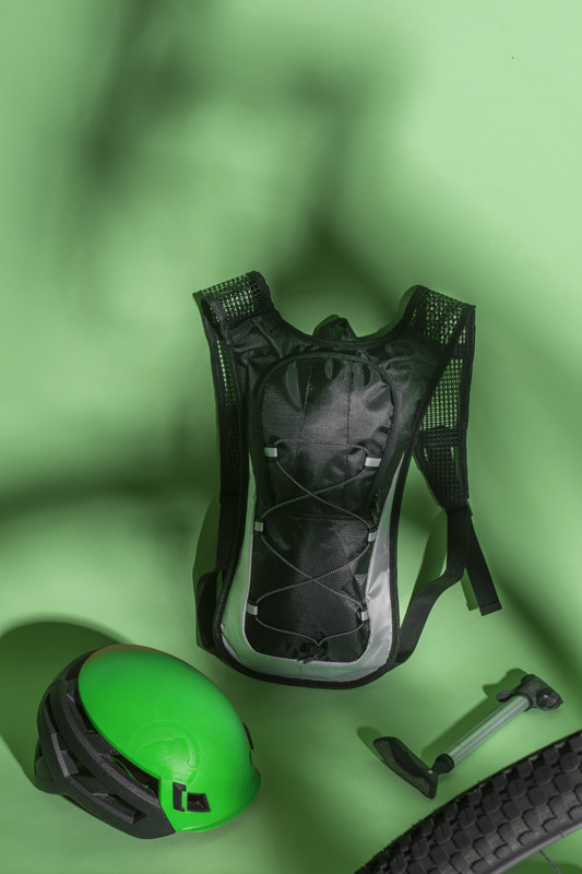 The RODE bike backpack made of durable 420D polyester has a place for a water bag, mesh harness with reflective stripes and an elastic band at the front. The backpack has a stiffened back with elements of soft mesh for increased comfort. Backpack capacity: about 3.2L.